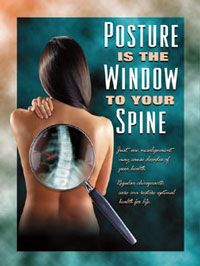 Good Posture...Good HealthAll your life, you have been told "stand up straight...watch your posture". Hopefully, you have taken that advice. You will look better and have more energy if you do. Actually, there is much more to posture than most people realize. Your posture is the position of your ligaments, muscles, and spinal bones, and the condition they are in. Posture is the window to the spine. If posture is out of balance, then the spine is out of balance, putting unhealthy pressure upon your nervous system. Activities as subtle as sleeping, standing or walking abnormally: to more obvious traumas like emotional stress, work or auto injuries, recreational injuries and even the birth process itself can result in spinal imbalance. Your spine is the most important factor affecting your posture. In order to have the best possible posture (and health), your spine has to be in the best possible condition. ... EQUALS GOOD HEALTH Optimal posture is a vital key to achieving optimal health for each person in your family. Early detection and elimination of subluxation will lead to a healthy nervous system at any stage of life. From a rear view your spine should be perfectly straight, and each of the 24 spinal bones stacked precisely on top of each other. Looking at the spine from the side you should see three curves, each having a 60' arc. It's been observed in nature, engineering, physics and geometry that a 60' arc offers the strongest defense against the destructive forces of gravity and motion.